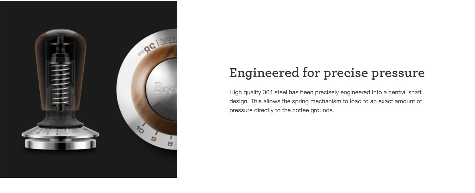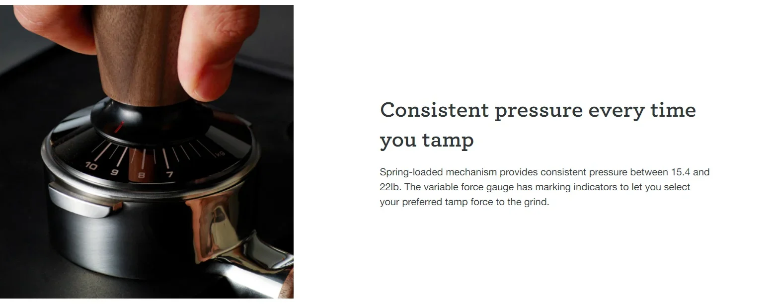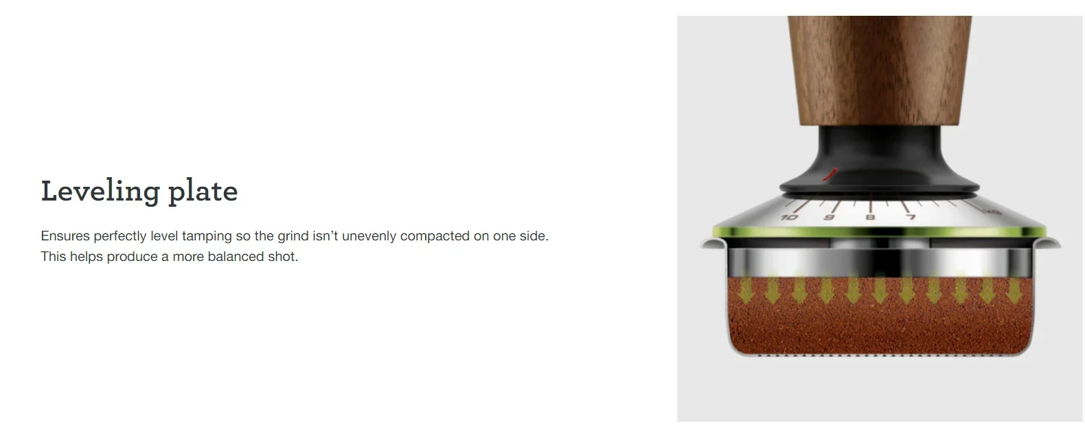 Self-leveling tamper provides consistent pressure with minimal effort.