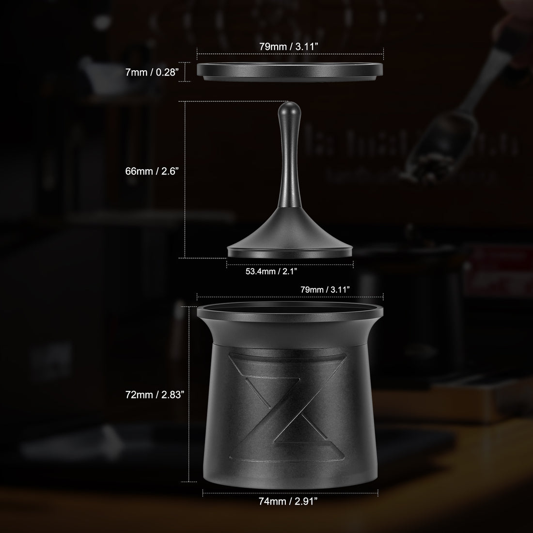 IKAPE Blind Shaker combines the functions of a dosing funnel and a dosing cup, which can be used to receive the coffee powder, just put it on the portafilter, then lift the center lever and rotate it left or right to knock the inner wall of the Blind Shaker, which can make the chunks of coffee powder break up quickly. Evenly distributed ground coffee will fall onto the coffee portafilter basket.