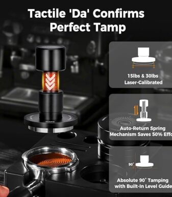 The best coffee tamper for beginners – This IKAPE tamper has a built-in double-stage spring, which makes it easier to use and simpler to operate than the old hand tamper, and you only need to press it gently to finish the coffee tamp, so you don’t need to worry about making a mistake!
